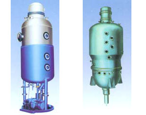 整個設備可分為加熱蒸發室、加熱夾套、汽液分離器、攪拌器等四部分。我廠在夾套加熱的基礎上經多方面研究,設計了內加熱、內循環加熱,蒸發結晶鍋、用戶使用后反映其蒸發效果比外加熱(夾套加熱)高1.8倍。 該設備與產品有接觸部分,均采用1Cr18Ni9Ti制作,加熱蒸發室、如一園筒殼體,為按裝維修方便,采用不同厚度材料分兩段加工,用法蘭連接。封底可加工成半球形、碟形、或錐形器身上,下圓筒都裝有視鏡,以觀察溶液沸騰狀況,霧沫夾帶高度,溶液的濃度,結晶大小及分布情況等;鍋體內入孔是為方便清洗、維修,下鍋部份焊上加熱夾套,其高度通過計算蒸發所需面積而定。