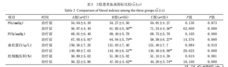 研究結(jié)果顯示,無(wú)氧療干預(yù)組,各項(xiàng)指標(biāo)均無(wú)明顯改善;在持續(xù)低流量吸氧的長(zhǎng)期家庭氧療的治療中,各項(xiàng)指標(biāo)改善明顯優(yōu)于治療前,也明顯優(yōu)于無(wú)氧療干預(yù)組,而高流量氧療組治療效果優(yōu)于其他兩組。這是因?yàn)楦吡髁垦醑煂?duì)氧濃度的精確調(diào)節(jié)與輸送,不僅能使患者達(dá)到對(duì)氧的需求,而且在呼氣末對(duì)氣道有持續(xù)的正壓效果,使得呼氣末氣道擴(kuò)張,從而改善患者有效通氣和氧合狀態(tài),并促使二氧化碳排出。
