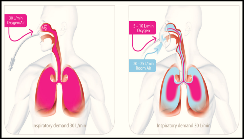 經(jīng)鼻高流量氧療(HFNC)指通過無需密封的鼻導(dǎo)管直接將一定氧濃度的空氧混合高流量氣體輸送給患者的一種氧療方式。